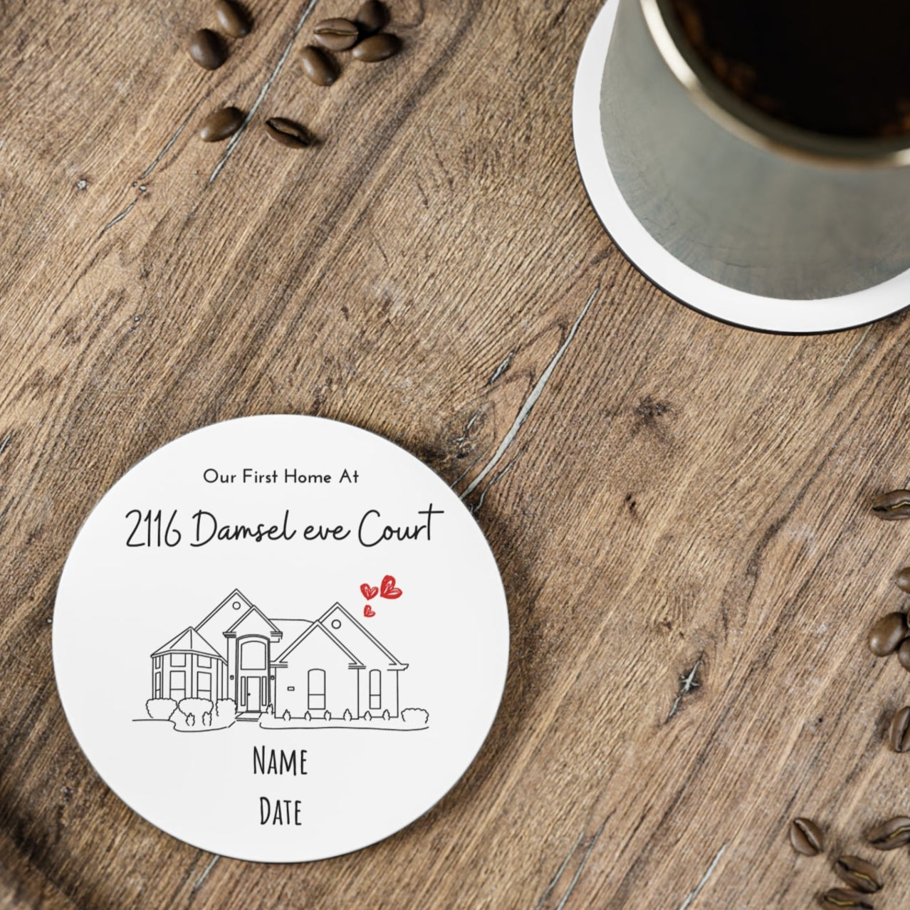 Customizable Design: Coaster featuring a personalized outline of your home.