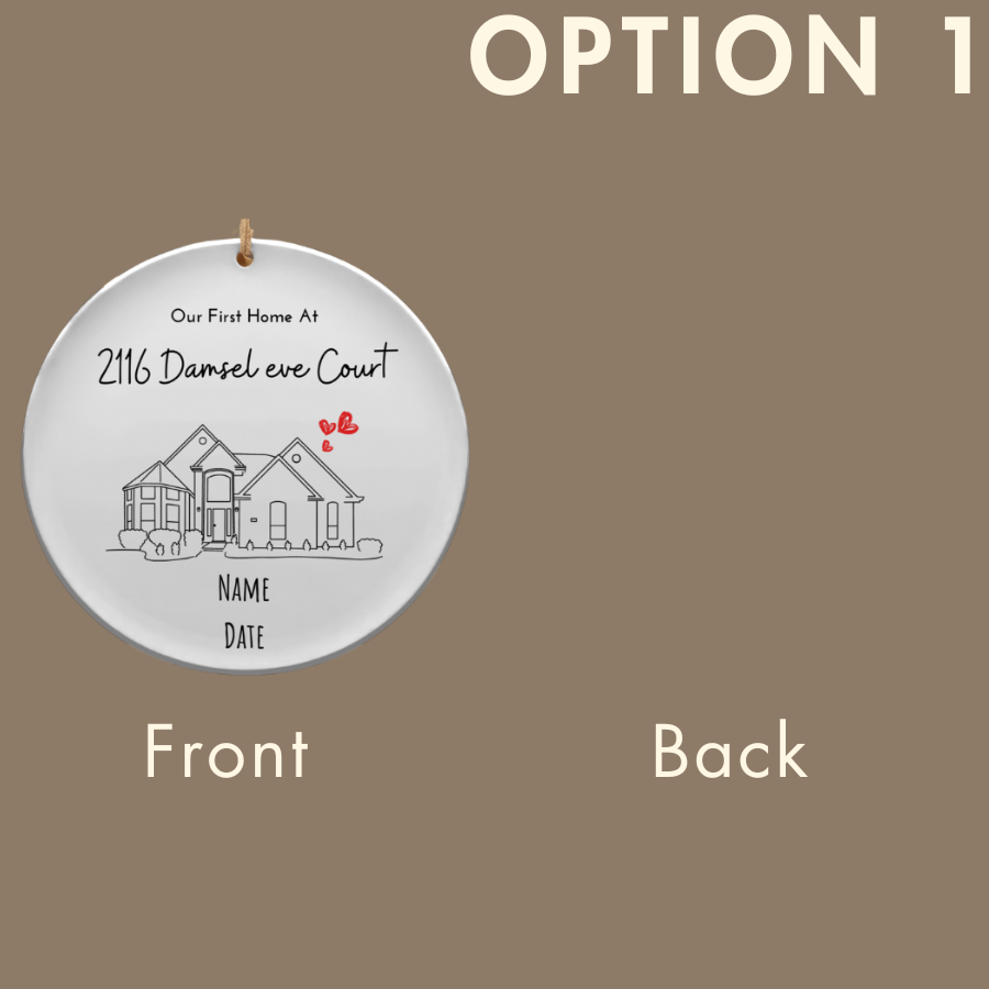 This beautifully crafted ornament features a detailed hand-drawn outline of the home, personalized with your client's name, move-in date, and address.