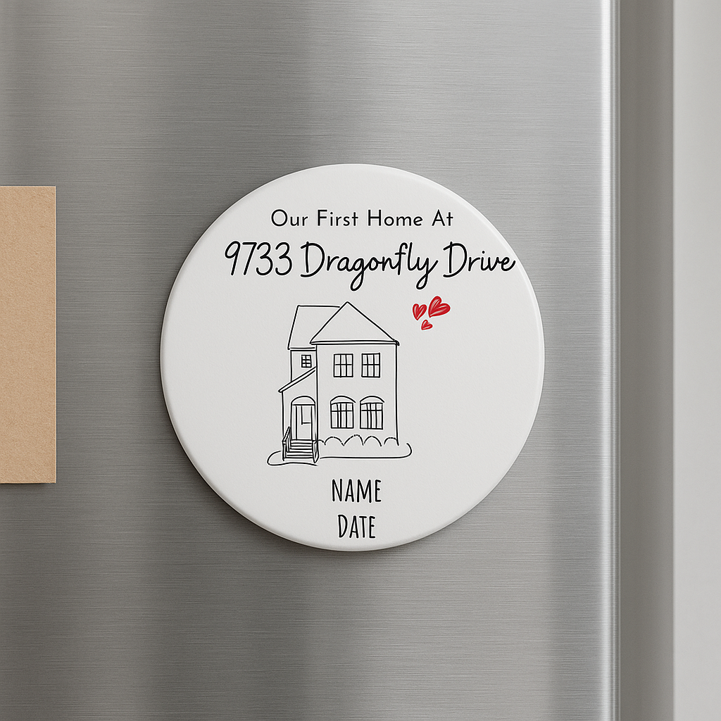 How to Personalize: Simply upload a photo of your home with clear view, and we’ll create your custom design, tailored to your magnet. Provide name and dates if you like add on your Magnet.