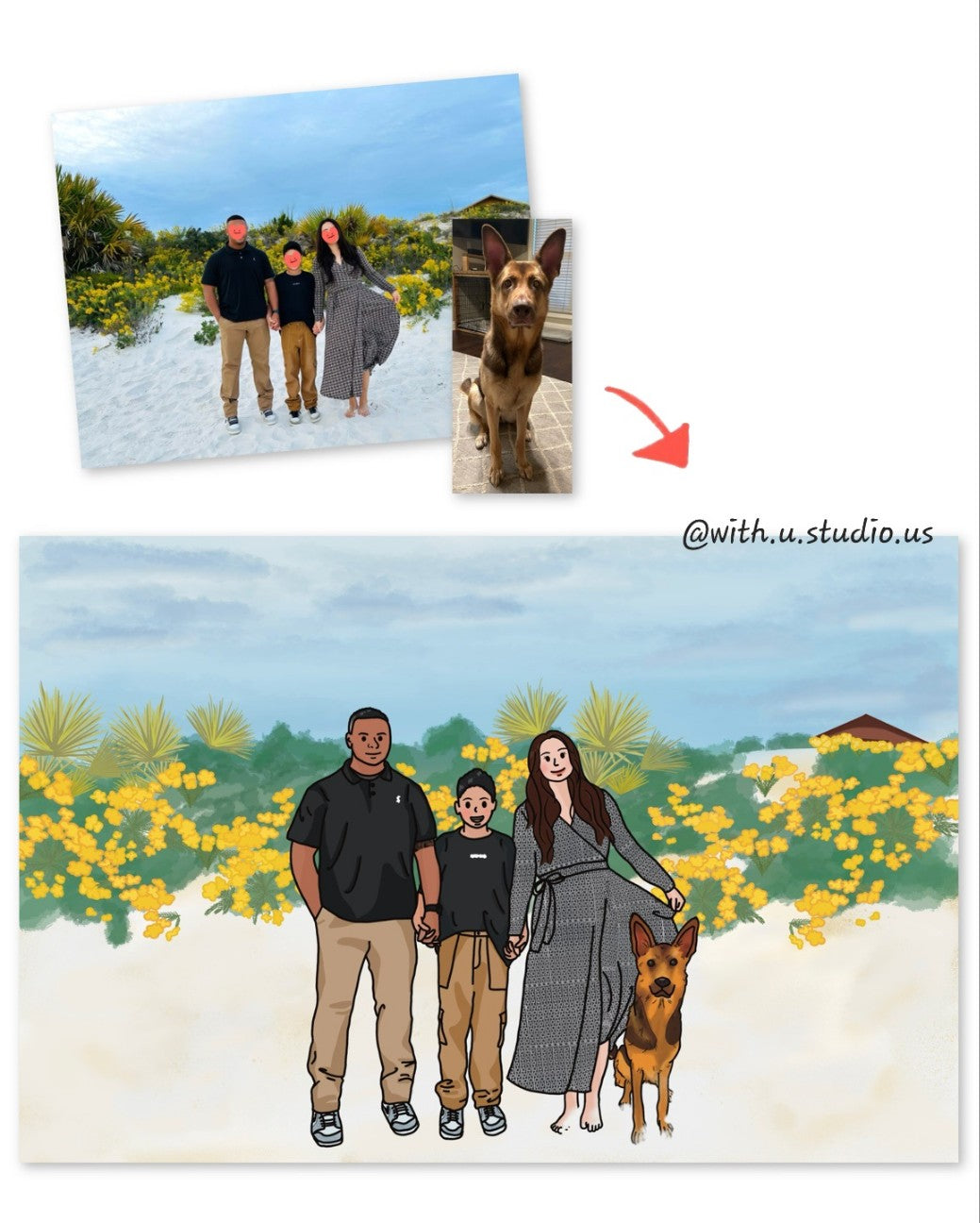 Capture the essence of your loved ones with our Personalized Portrait Drawing service. Whether it's a cherished family member, a beloved pet, or a special moment, our talented artists create a stunning, custom digital portrait that you'll treasure forever.