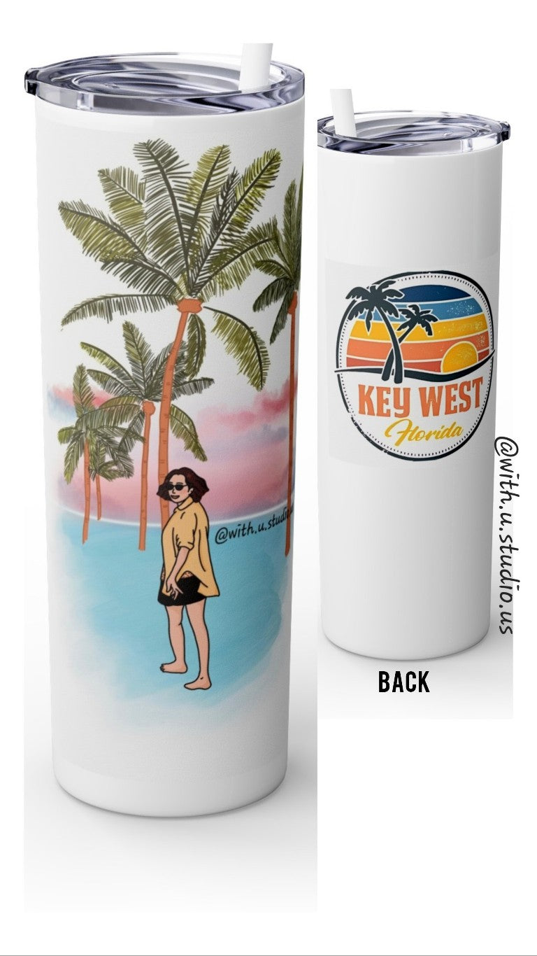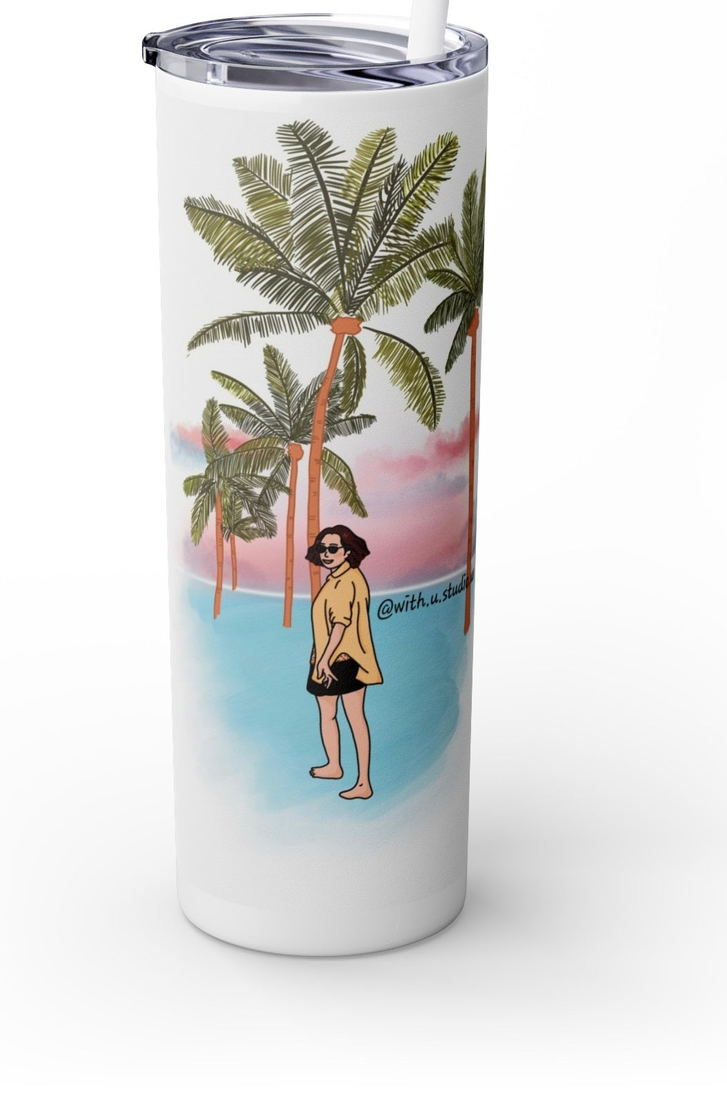 20 Oz Tumbler: Elevate your daily routine with a stainless steel tumbler featuring your custom portrait. Whether it's your morning coffee or tea, this tumbler adds a personal touch to every sip. It also comes with a durable steel straw and a convenient straw cleaner for easy maintenance.